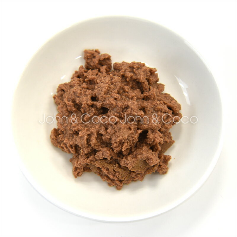 | 原材料 | ポーク、フィッシュ、米、動物性油脂、コーンスターチ、セルロース、コーングルテン、チキンエキス、植物性油脂、魚油、酵母、ミネラル類、ビタミン類(ビタミンE、ベータカロテン、他)、増粘安定剤(グァーガム)、アミノ酸類(タウリン、メチオニン) |